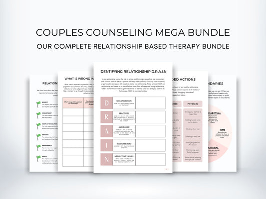 We offer a wide range of worksheets covering topics such as anxiety, ADHD, trauma/PTSD, boundary setting, self-esteem, codependency, attachment, worry, and overthinking— plus many more to support diverse client needs.